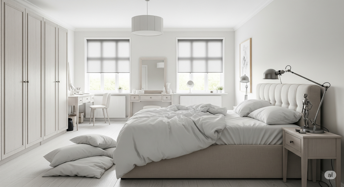 Ошибка: Яркое или холодное освещение и недостаток текстиля. Резкий свет и непривлекательное постельное белье могут вызвать чувство беспокойства и дискомфорта.