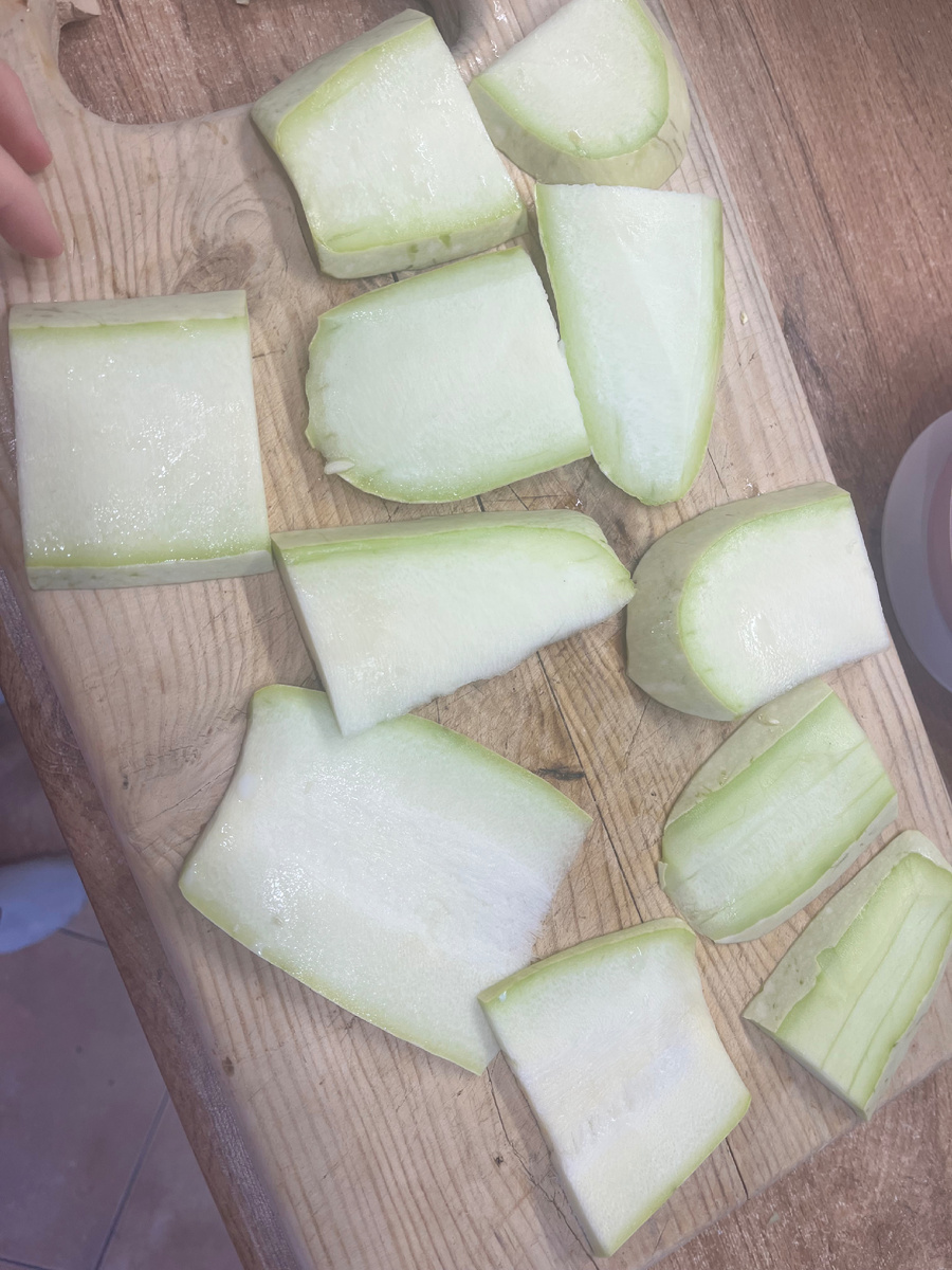 1. Очистите кабачок и нарежьте его тонкими ломтиками.