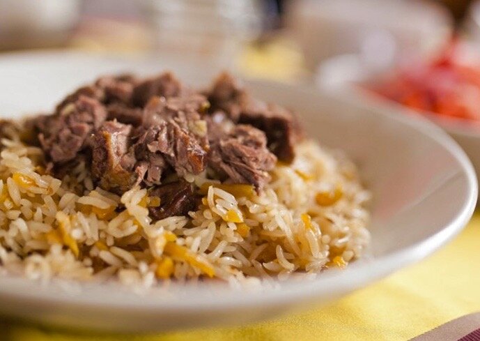 Приготовление начинается с промывания риса и его замачивания. Затем обжаривается говядина, после чего добавляются лук и морковь. Далее следует влить воду и томить зирвак перед добавлением риса. Когда рис будет готов, его нужно оставить настояться, чтобы плов впитал все ароматы.