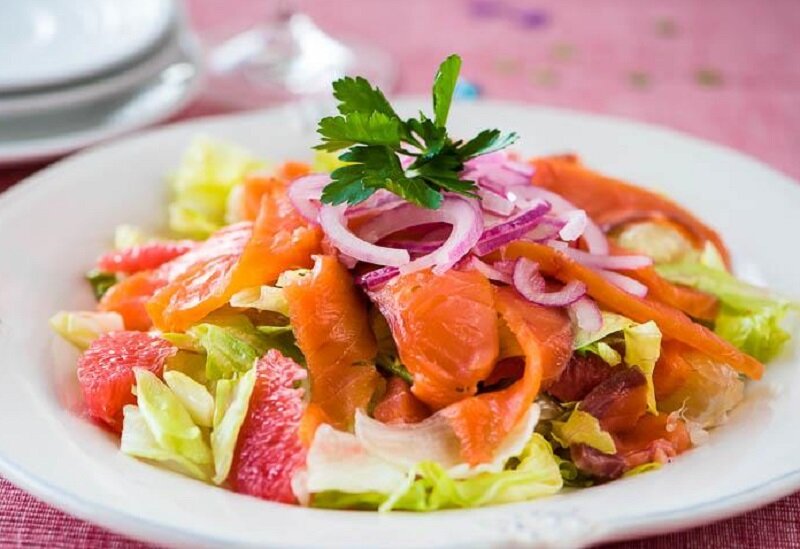 Салат из цитрусовых с красной рыбой
