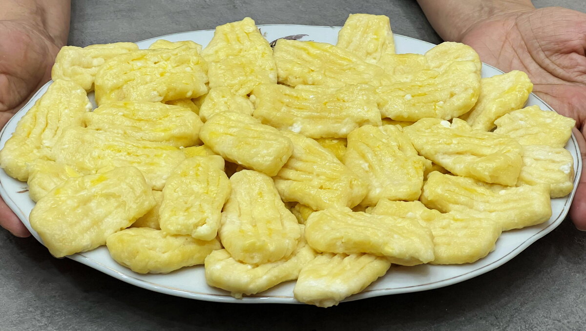 Приготовить вареники проще простого. Для начала все ингредиенты следует тщательно смешать в глубокой миске: творог, сахар, яйцо, а затем добавить муку. После этого нужно перенести тесто на рабочую поверхность, сформировав длинную колбаску диаметром около 3 см. Нарежьте ее на брусочки шириной около одного пальца. Брусочки можно оставить в таком виде или скатать в шарики, а также придавать интересные формы с помощью вилки.