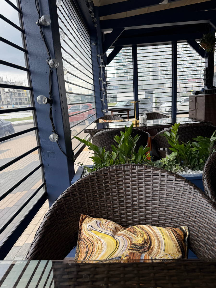 Несмотря на то, что закуски были зарезервированы, на крытых верандах ресторана можно было приятно провести вечер. Уютные укрытия с пледами и обогревателями создали комфортные условия для наслаждения трапезой на свежем воздухе.