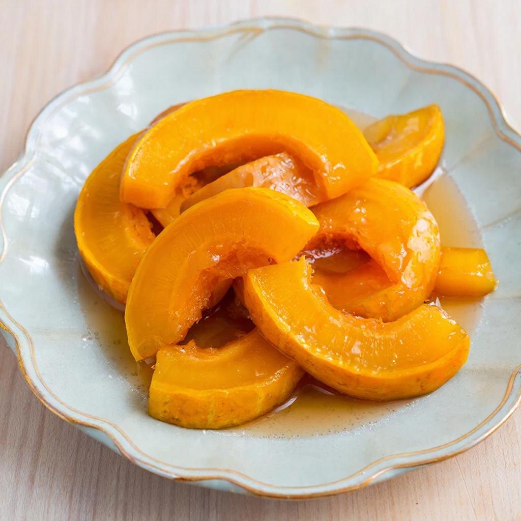 После этого заливаем дольки тыквы горячим сиропом и оставляем на некоторое время для остывания. Когда все остынет, слейте маринад, доведите его снова до кипения и поместите тыкву обратно в кастрюлю. Варите на слабом огне до тех пор, пока тыква не станет прозрачной и не приобретет красивый золотистый цвет.