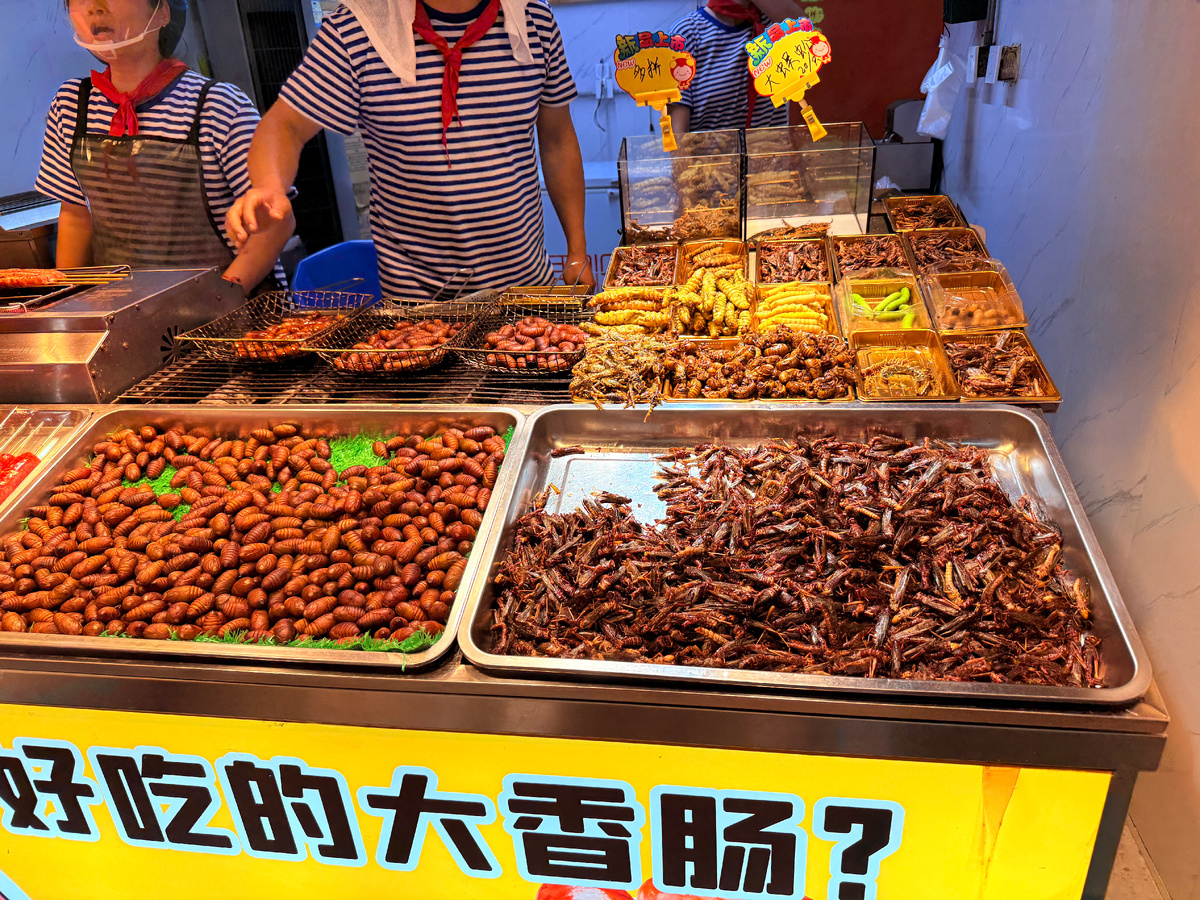 Непривычные закуски, такие как личинки тутового шелкопряда и скорпионы, могут показаться странными, но они имеют своих поклонников. Несмотря на кажущуюся экзотику, для самих китайцев это скорее увлечение, чем повседневная пища. Хотя, по заверениям местных, шелкопряды приносят вкусовое удовольствие на уровне хрустящих семечек.