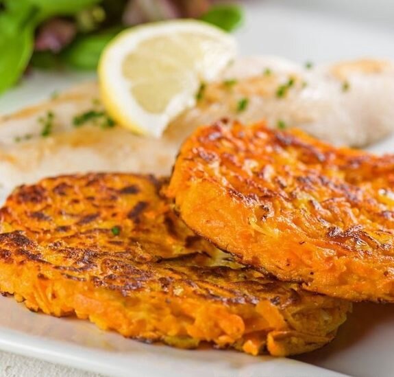 Готовим восхитительный жареный лосось с морковными котлетами