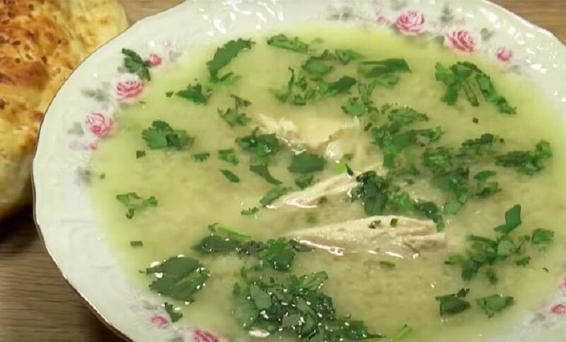 Для подачи супа его разливают по тарелкам, добавляют курицу и щедро посыпают нарезанной кинзой. Подается с белым хлебом или лепешками. Приятного аппетита!