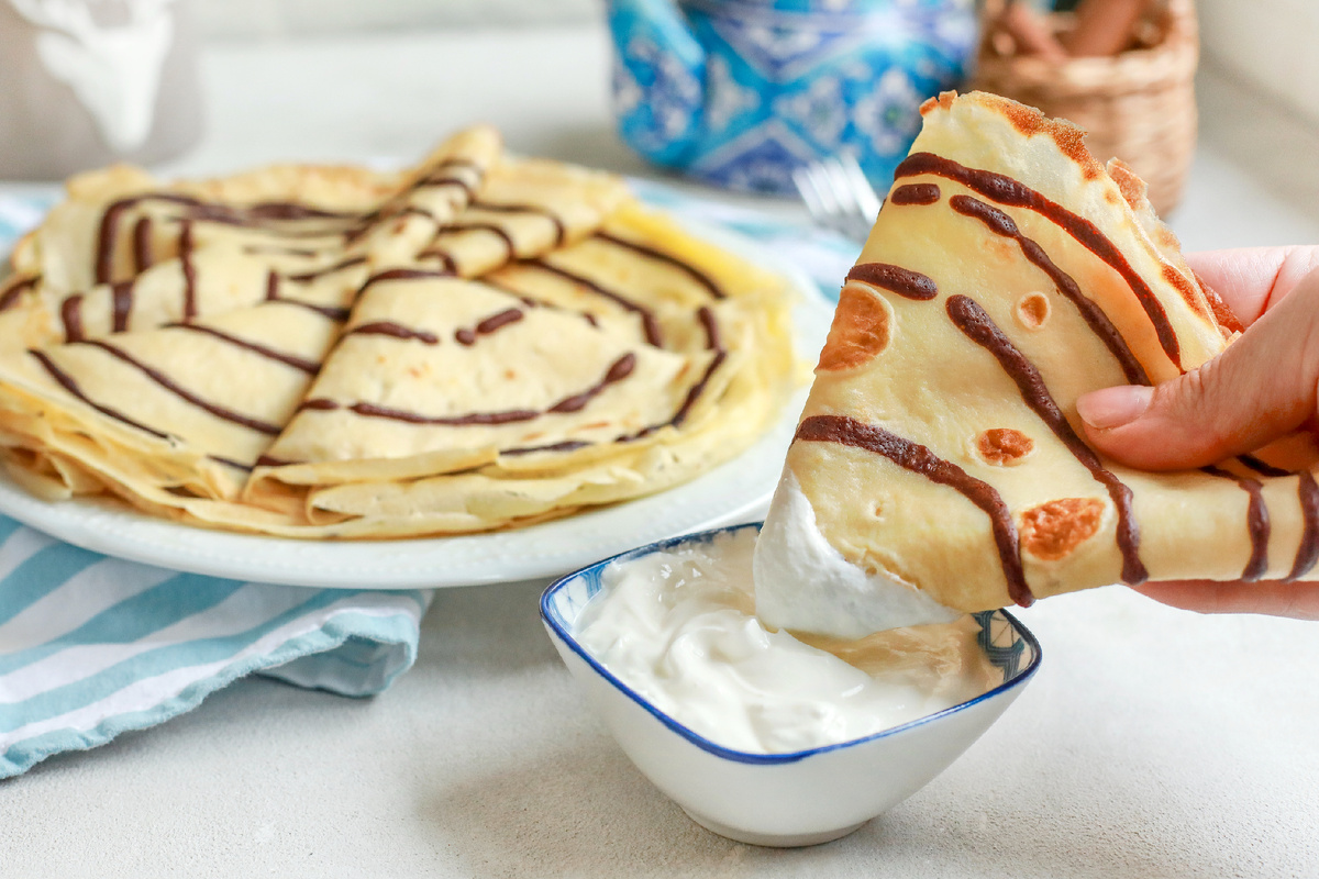 Шаг 4: Подавайте готовые блинчики, предварительно смешав сметану с сахарной пудрой. Это придаст десерту особую нежность и сладость! Готовьте с удовольствием, радуя свою семью и друзей!