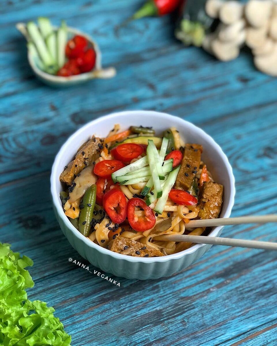 Рецепт лапши вок позволяет экспериментировать с ингредиентами: вместо сейтана можно использовать тофу или соевые кусочки, менять силу остроты и пробовать разные соусы, такие как терияки или кисло-сладкий. Главное правило — следить за составом и избегать животных компонентов, чтобы блюдо оставалось веганским.