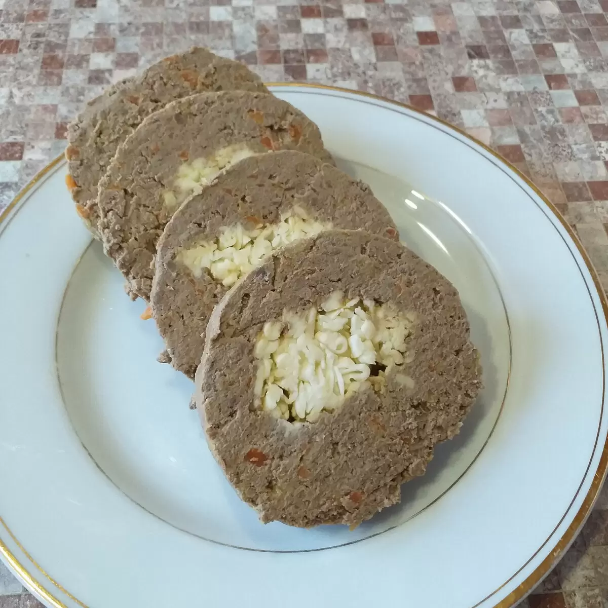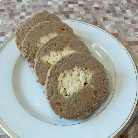 С этого момента остаётся только нарезать получившийся рулет на порционные кусочки и подать к столу. Паштет отлично сочетается с обжаренным луком, а также может быть намазан на кусочек хлеба. Это простое, но очень сытное угощение оставит приятные впечатления. Прекрасный вариант для любого торжества или быстрого завтрака.