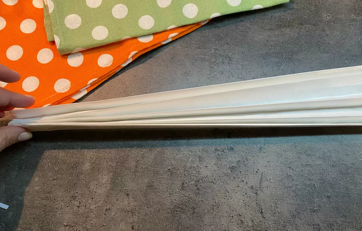Для начала понадобится пергаментная бумага. Мастера рекомендуют отрезать достаточное количество и сложить его гармошкой. Если бумага тонкая, лучше использовать два слоя для большей прочности. Закрепить края можно как проволокой, так и зубочистками, что позволит создать оригинальную форму.