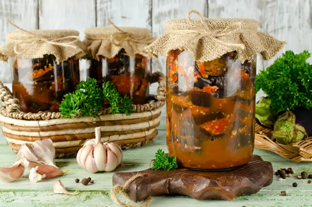 Во времена насыщенного урожая баклажанов стоит поэкспериментировать с их заготовкой, попробовав необычные комбинации ингредиентов: