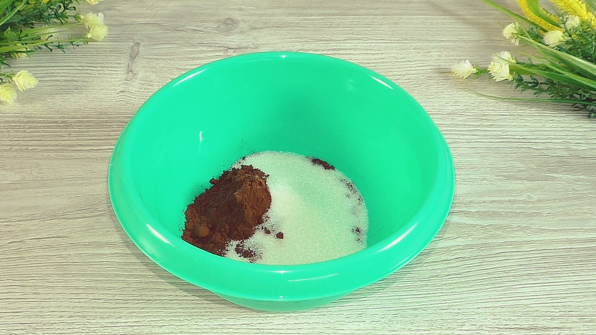 Для начала в миске смешивают какао-порошок и сахар. Затем добавляют яйцо и, не перемешивая, вводят кукурузный крахмал. Теперь самое время добавить 3 столовые ложки молока и тщательно перемешать, чтобы избежать комков.