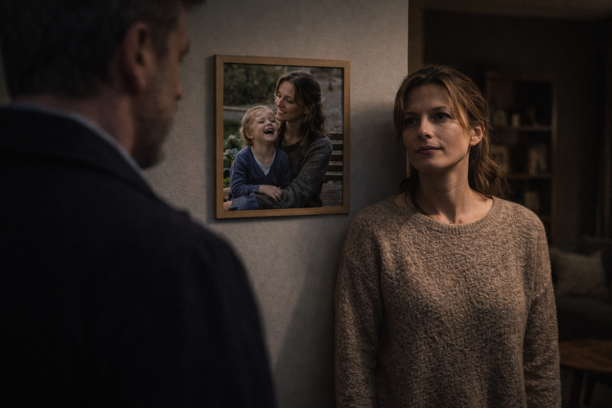 На стене висела фотография в простой, светлой рамке. На снимке она сидела на скамейке с семилетней девочкой, склонившей голову и смеющейся. Марина смотрела в сторону, не в камеру.