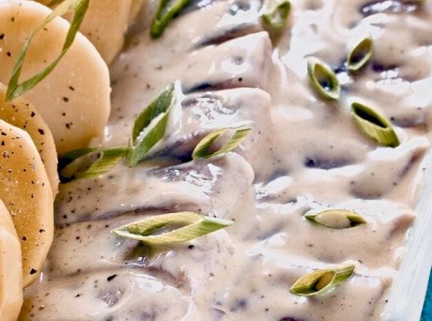 Нежная сельдь в соусе из молок, с каперсами и лимоном