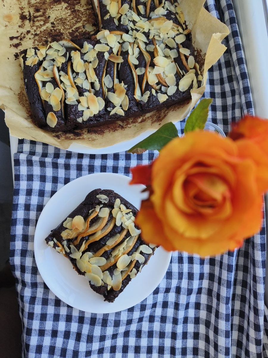 Рецепт брауни с грушами и миндалем