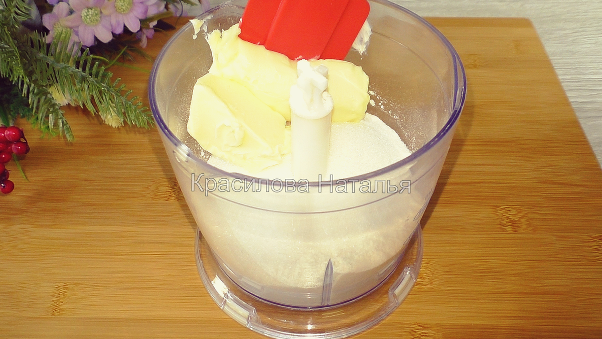 Для начала готовится основа: муку, сахар и масло можно измельчить в однородную крошку. Этот процесс можно выполнить с помощью блендера, достаточно смешать сухие ингредиенты с маслом до однородности всего за несколько секунд.