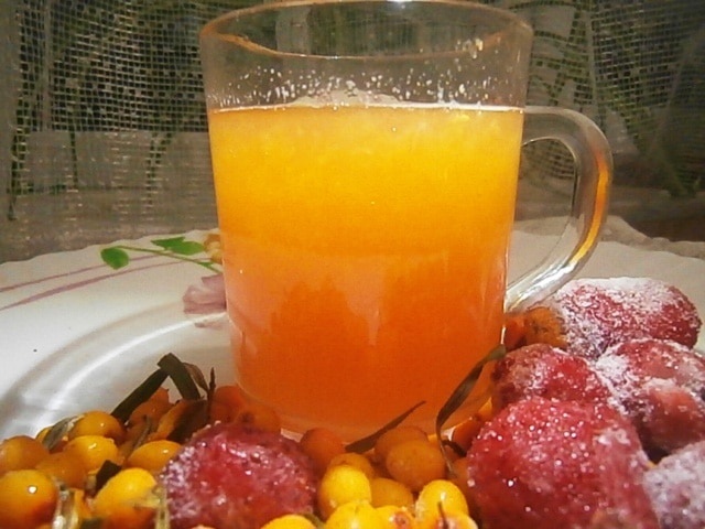 Непревзойдённый и насыщенный, облепихово-клубничный морс «Осенняя прелесть» не только удивляет вкусом, но и наполняет витаминами, ведь ягоды для него не требуют варки!