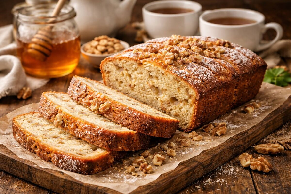 Медовый кекс — это тот самый десерт, который вызывает ассоциации с теплом домашнего очага. Он идеально подходит для тихого вечера с чаем в кругу близких, и сразу понятно, что кто-то обязательно попросит добавку.