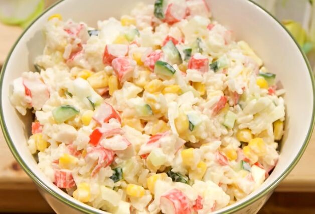 Классический крабовый салат с рисом