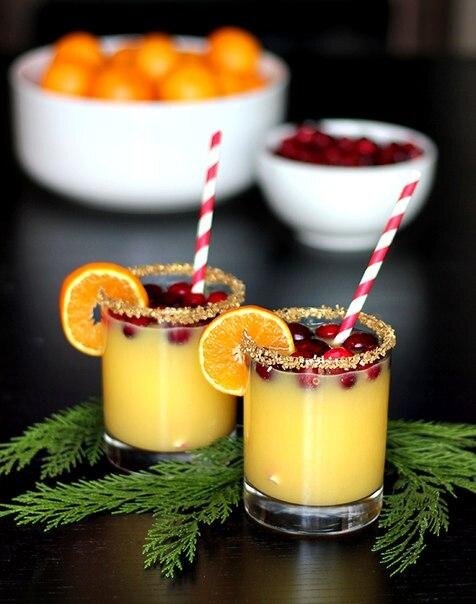 Обмакнуть край бокалов в воду, а затем погрузить в сахар, рассыпанный на плоской тарелке, чтобы создать сладкую корочку.Влить в каждый бокал по 100 мл апельсинового сока и выжать туда сок из двух мандаринов, тщательно перемешать.Долить газированной воды и украсить коктейль свежей клюквой и дольками мандарина перед подачей на стол.Этот коктейль идеально подойдет для любого праздника или дружеской встречи. Его яркий вкус и красочная подача не оставят гостей равнодушными!