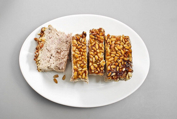 Сначала аккуратно снимите жир с утиных грудок. Измельчите две груди, добавьте розмарин, соль, перец и коньяк, оставив мариноваться на 30-40 минут.Измельчите сало и тонко нарежьте бекон. Лук нарубите, а яблоко очистите от кожицы и семян, нарезав кубиками.На горячей сковороде обжарьте бекон до золотистого цвета, добавьте лук и, перемешивая, готовьте еще несколько минут. Завершите обжарку добавлением яблок, пока они не станут мягкими.К более крупным кусочкам утиных грудок в блендере добавьте сало, пробивайте до состояния грубого фарша и соедините с жареными яблоками, луком и беконом.На плите растопите сливочное масло, постепенно добавьте муку и обжарьте, затем влейте сливки. После закипания аккуратно вводите яйца по одному, помешивая до загустения.Приготовьте можжевельник, слегка раздавив ягоды. В миске объедините фарш, маринованные куски утки и можете добавить соус. Перемешайте все до однородности.Разогрейте духовку до 160 градусов. Переложите массу в форму для террина, обсыпьте кедровыми орехами. Поместите в глубокий противень с водой и выпекайте в течение 5-10 минут до готовности.Остудите готовый террин до комнатной температуры, аккуратно извлеките из формы и нарежьте на порции для подачи.Эта закуска отлично сохранится в холодильнике до шести недель — идеальный вариант для праздничного стола или уютного вечера с близкими!