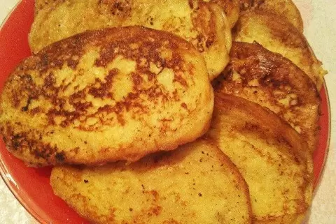 1. В глубокой миске тщательно взбить яйца с молоком. Не забыть добавить немного соли для вкуса. Батон нарезать порционными ломтиками, которые нужно хорошо замочить в яично-молочной смеси.
