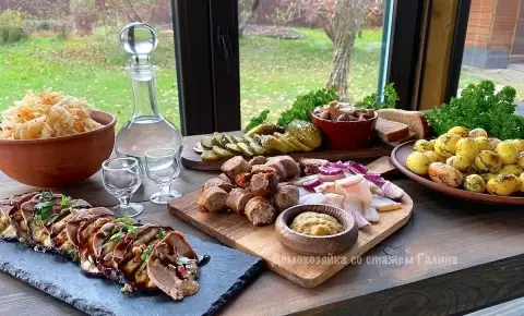 - Сало и колбаса. Быстрая нарезка сала и поджарка колбасы на сковороде – это базовые закуски, которые не требуют много времени. Удачным решением будет дополнять их разнообразными домашними заготовками.